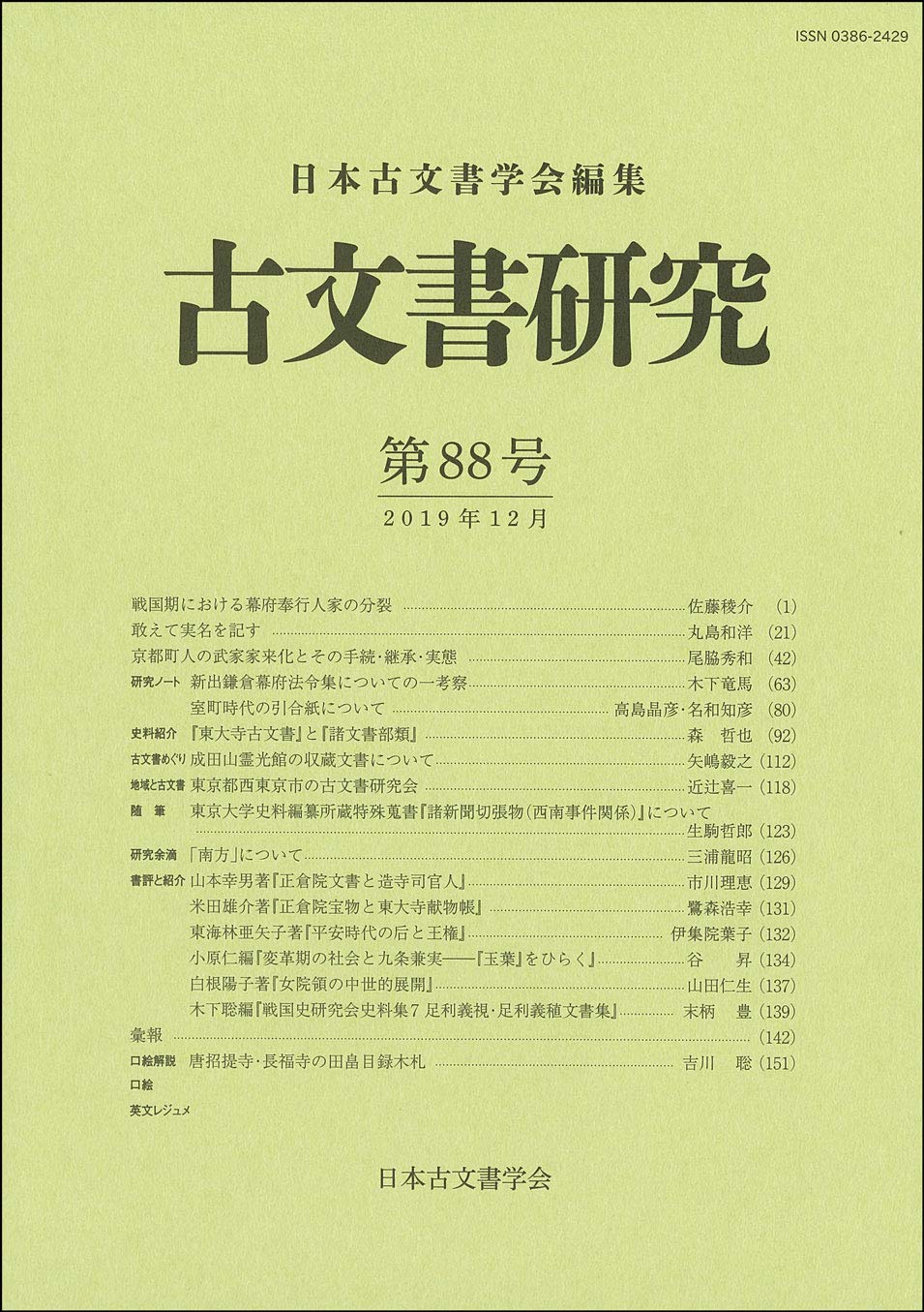 古文書研究 第88号