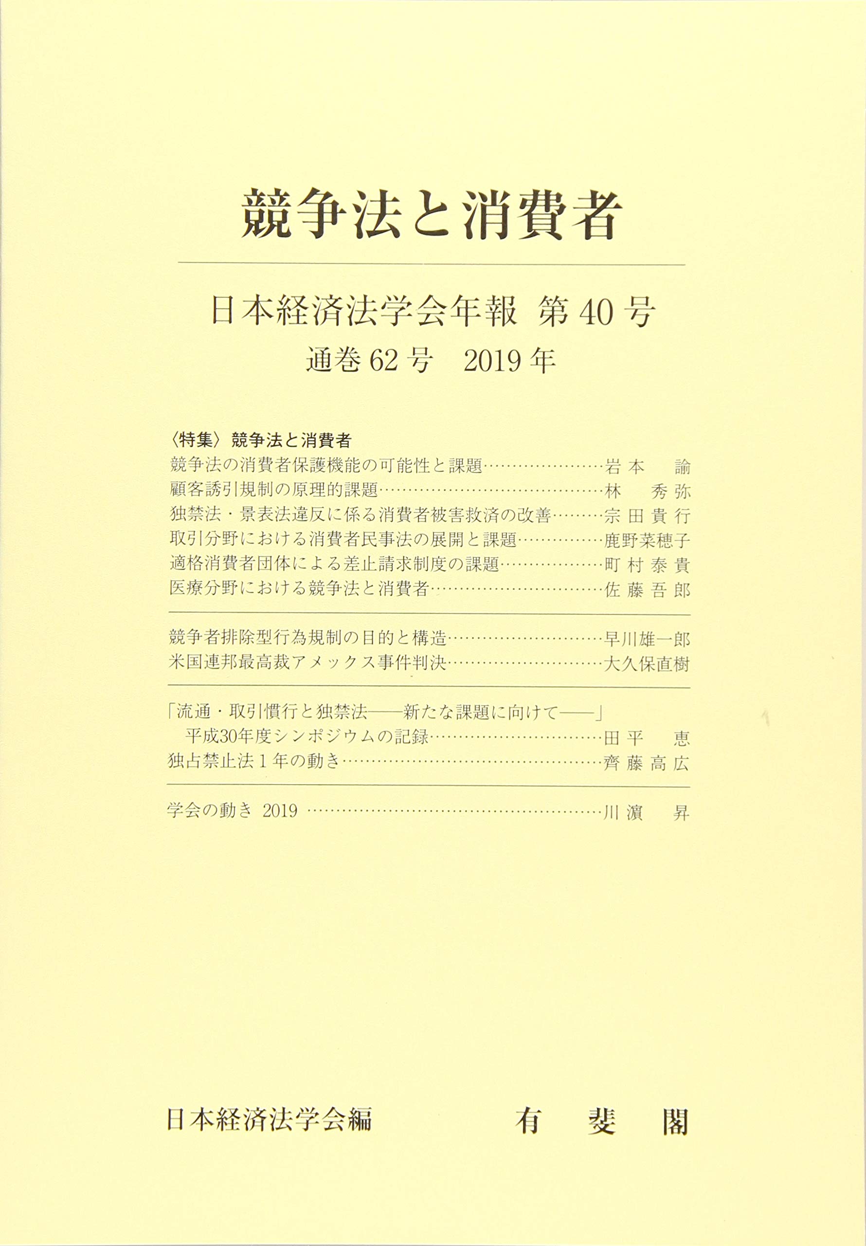 競争法と消費者--日本経済法学会年報 第40号