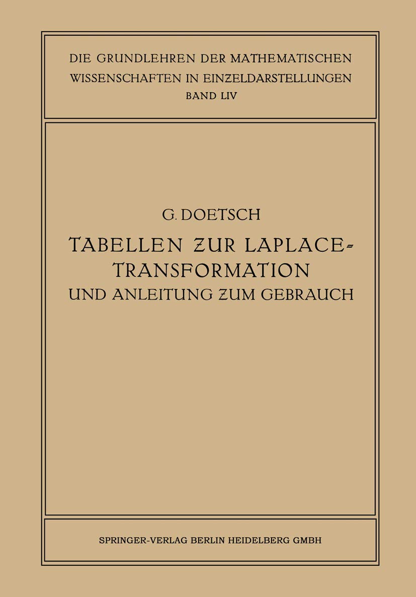 Tabellen zur Laplace-Transformation und Anleitung zum Gebrauch (Grundlehren der mathematischen Wissenschaften)