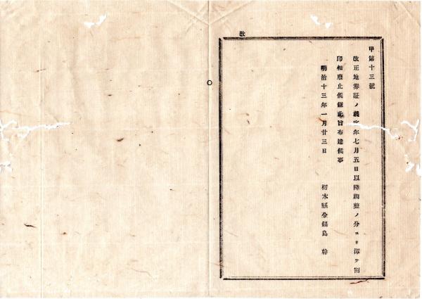 明治布告布達 ○改正地券証の儀 客年7月5日以降調製分より 割印を廃止 栃木県令鍋島幹○明治13年 栃木県布達○和本古書古文書