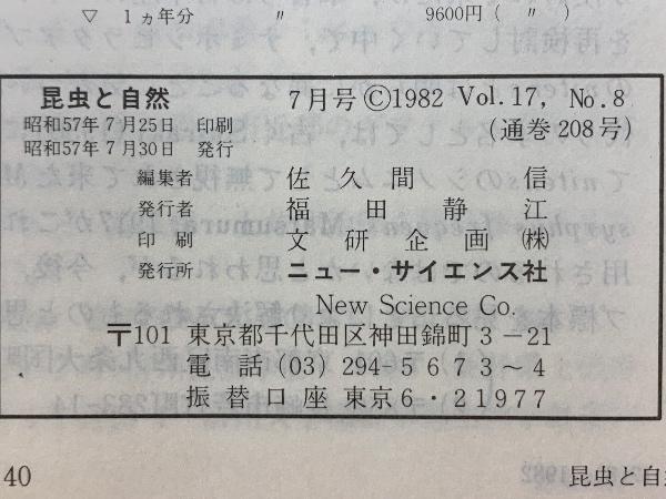 昆虫と自然 1982年7月号  Vol.7 No.8