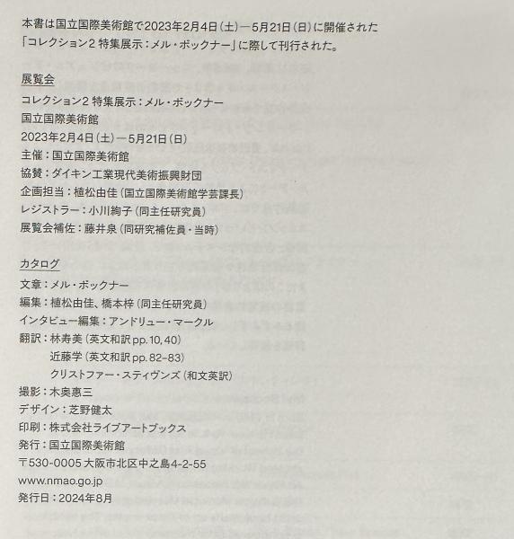 アメリカのコンセプチュアルアートを代表するメル・ボックナーの2023年に国立国際美術館で行われた際の展覧会図録です。