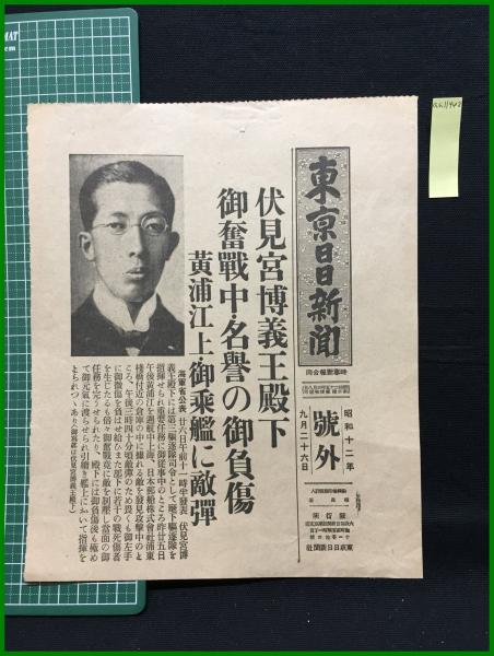 【東京日日新聞 昭和12年9月26日 号外】【伏見宮博義王殿下 御奮戦中・名誉の御負傷】