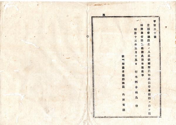 • 解説 N25092628明治布告布達 ○当県会議員 安蘇郡内田太蔵 依願解員に付 安蘇郡に於て臨時選挙会開設 栃木県令鍋島幹○明治13年 栃木県布達○和本古書古文書