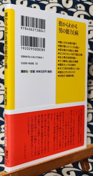 【内容説明】 智・性・勇・ガン・心の問題まで、最新の世界的指研究を網羅した「指の権威」の集大成! 金儲けの才覚、ペニスのサイズ、イケメン度、うつ傾向……男の指に隠された秘密の数々を軽妙に紐解く科学エッセイの決定版!遺伝子のメカニズムなど、動物行動学の知見を駆使して人間のさまざまな事象を独自の視点から軽妙にとらえる著者の、待望の+α新書第一作。大ヒット作『女は男の指を見る』をさらに深く掘り下げ、男の指比から読み解く、性、アスリート力、イケメン度などの秘密をコミカルに紐解く。 ●男の指とペニスサイズ ●男の指とカラオケセンス ●男の指とアスリート力 ●男の指とビジネススキル ●力士の指比 最新研究「日本男児の指」 ●イケメンは薬指が長い ●男の指と精子の数 ●男の指と「心の病」 ●男の指と前立腺がん 【序章】ついに日本で始まった指比の研究 【第一章】男の能力と指比との関係 指比でわかるものいろいろ 指比と音楽の才能 指比と男のスポーツの能力 指比と韓国の海兵隊 指比と金儲けの才能 イケメンは薬指が長い 【第二章】男の隠れたあれこれ 指比とペニスサイズ──最新研究 指比と精子の質と数 イケメンは精子の質がいい 【第三章】心の病と指比の悩ましい関係 指の長さとうつ 自閉症とは超理系脳、超男性脳、超システム脳 自閉症、アスペルガー症候群、ADHD、失読症…… 自閉症の子どもが世界的に増加している 指比と学力 指比とアルコール依存症、チェーン・スモーカー 【第四章】指比でわかる身体の不調 顔のよさと健康 顔のよさと長寿 指比と前立腺ガンのリスク 指比と口腔ガン 指比と心臓発作 指比と乳ガン、卵巣ガンのリスク 【第五章】女が男を狙うとき 女による男の顔の好みの変化 子ども好きそうな男の顔 背の高い男には子が多い(女は背の高い男を選んでいるからこそ) 小さいことはいいことだ! 【著者等紹介】 竹内久美子[タケウチクミコ] エッセイスト。動物行動学研究家。1956年生まれ。京都大学理学部卒。同大学院博士課程にて動物行動学を専攻。1992年、『そんなバカな!遺伝子と神について』(文春文庫)で第8回講談社出版文化賞「科学出版賞」受賞