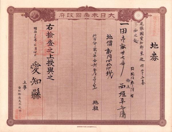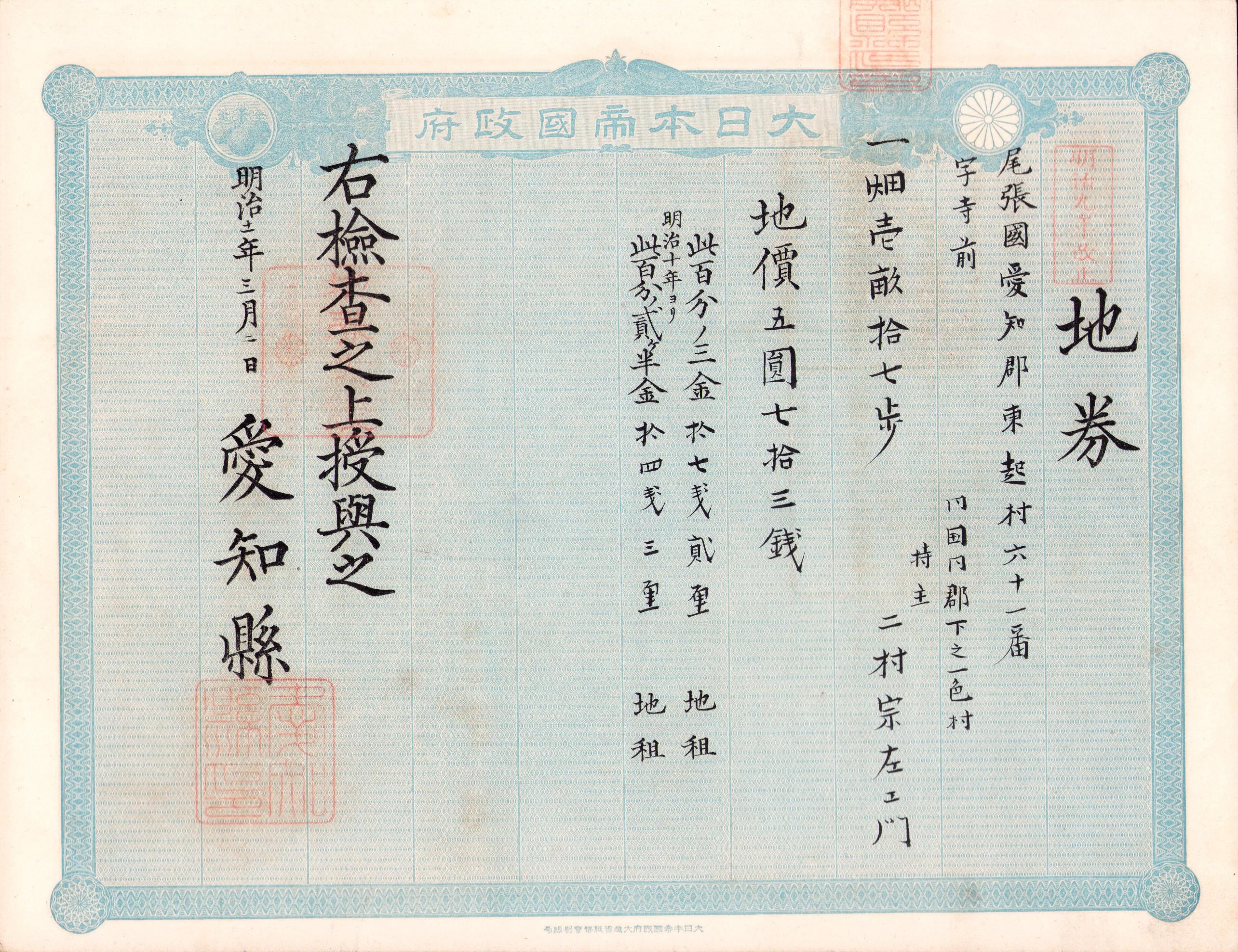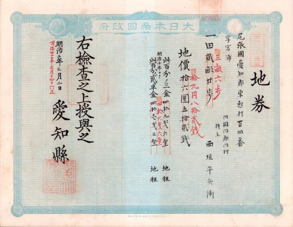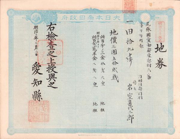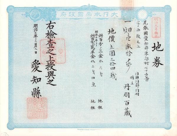 (地券)尾張国愛知郡東起村 10枚一括 -明治11~22年-