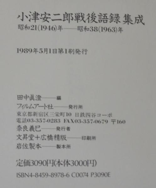小津安二郎戦後語録集成 : 昭和21(1946)年-昭和38(1963)年