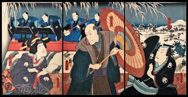豊国三代「恋飛脚大和往来」 三枚続