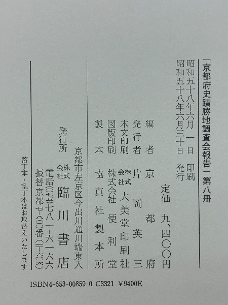 京都府史蹟勝地調査会報告 第8冊