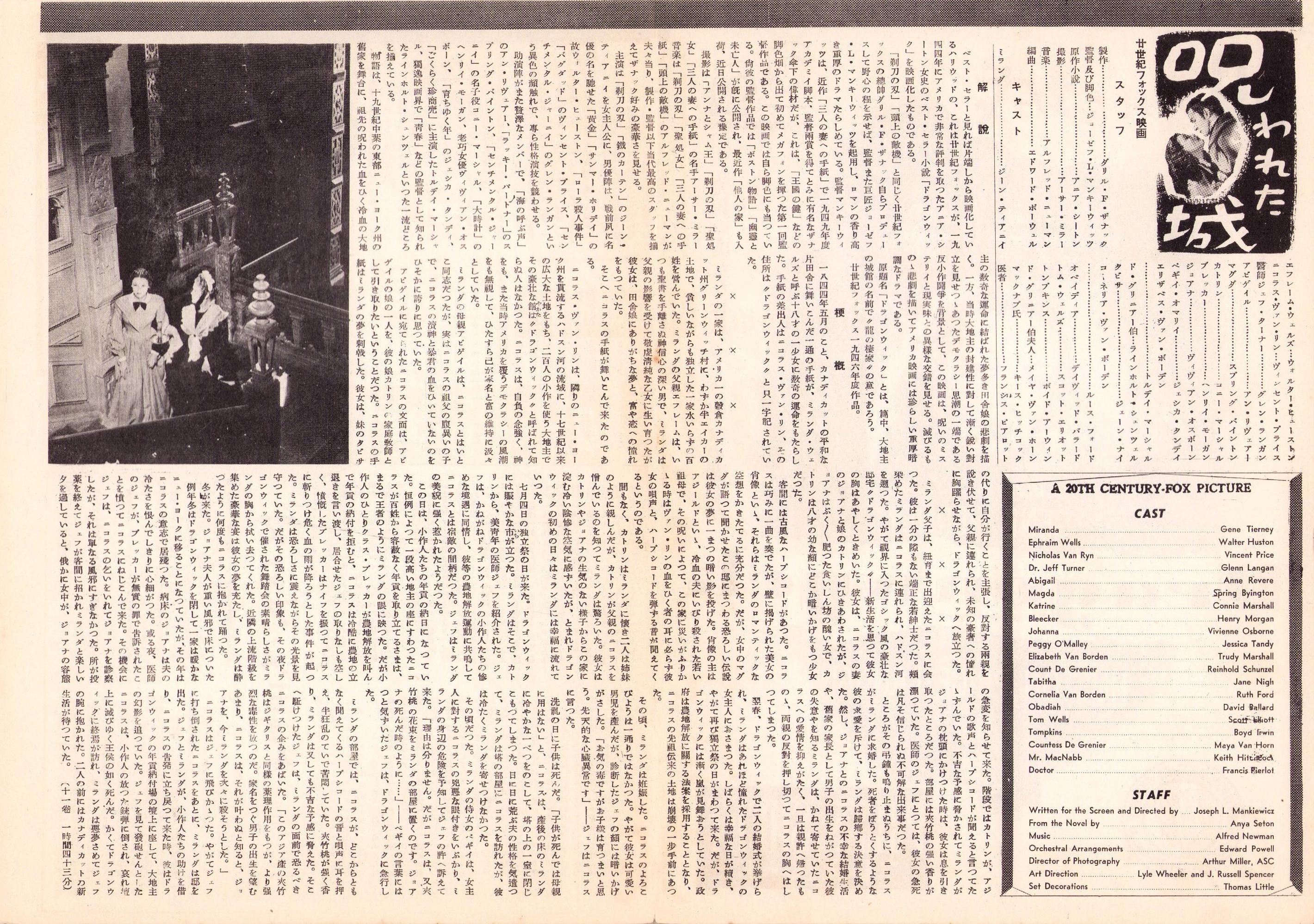 (映画プレスシート)呪われた城 -廿世紀フォックス映画-