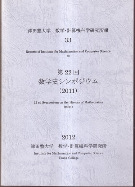 第22回数学史シンポジウム(2011) <津田塾大学 数学・計算機科学研究所報33>