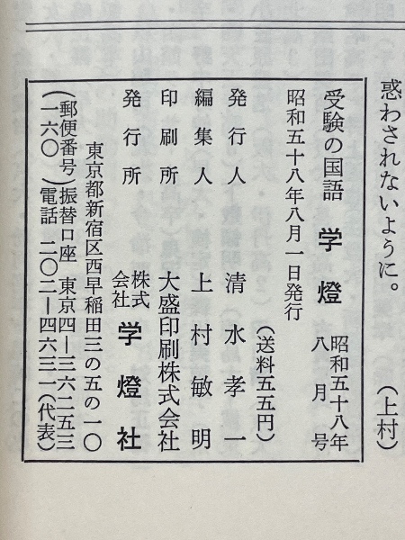 受験の国語 学燈 1983年8月号