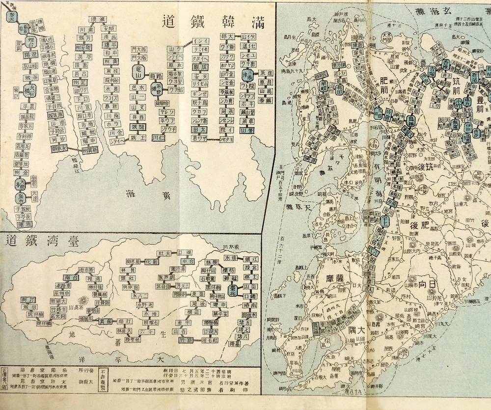 • 解説 樺太、満韓鉄道、台湾鉄道入。表紙に記名あり。表紙まわりに経年スレ等の古色あり。