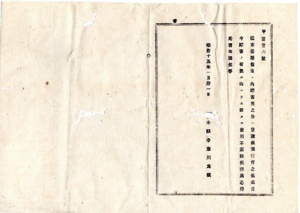 明治布告布達 ○堤塘敷地は 従来貸渡の慣行があったが 以後障害の有無に拘わらず新に使用を禁止する(使用不差許)○明治15年 栃木県布達○和本古書古文書