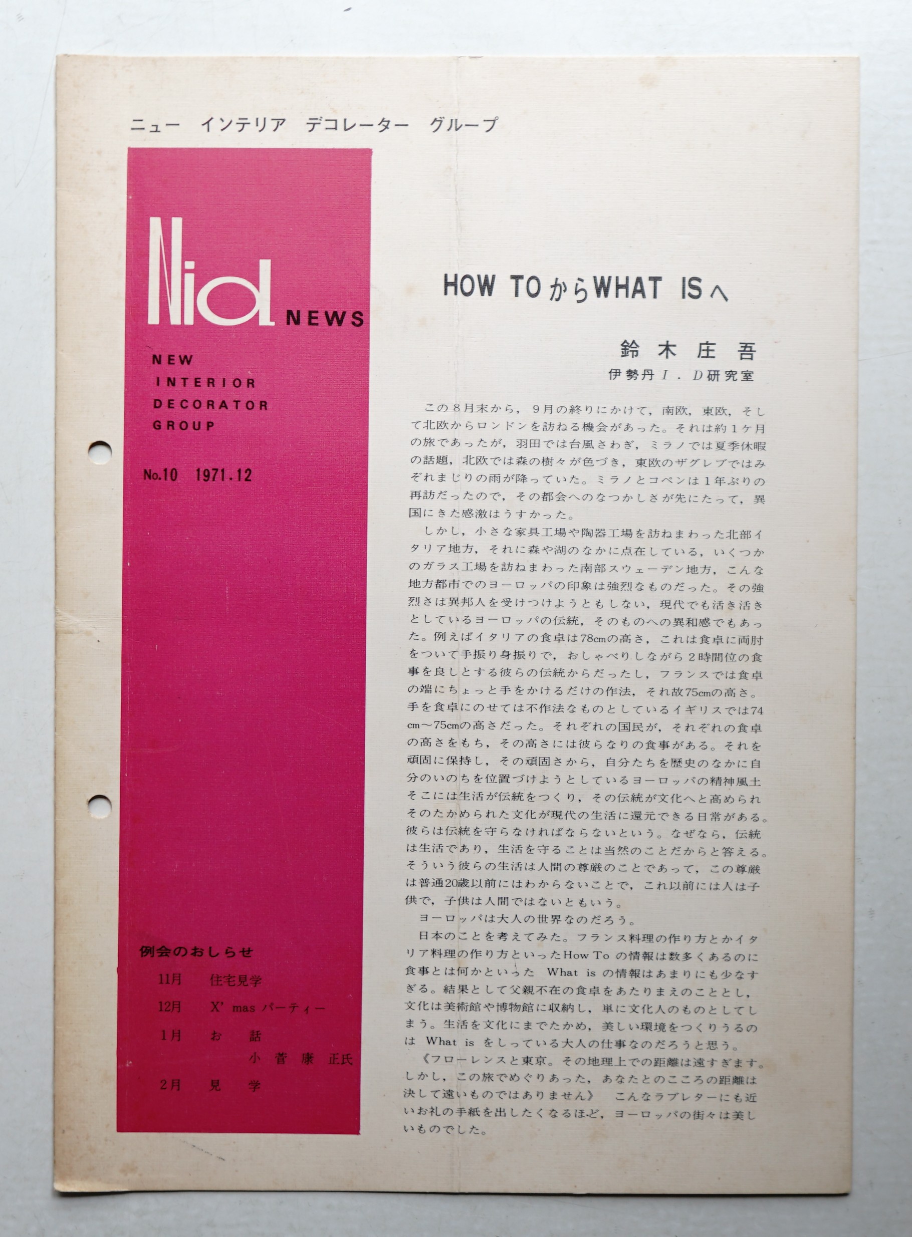 NID NEWS No.10 1971年12月 <ニューインテリア・デコレーター・グループ機関誌>