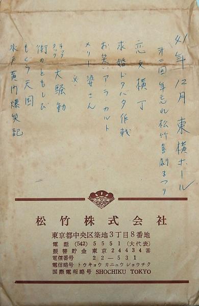 • 解説 昭和41年12月・東横ホール公演「第二回年忘れ松竹喜劇まつり」の資料用舞台写真です。