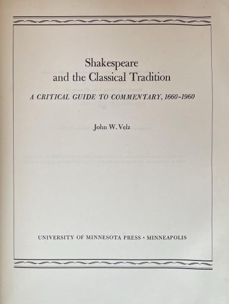 Shakespeare and the Classical Tradition: A Critical Guide to Commentary,1660-1960