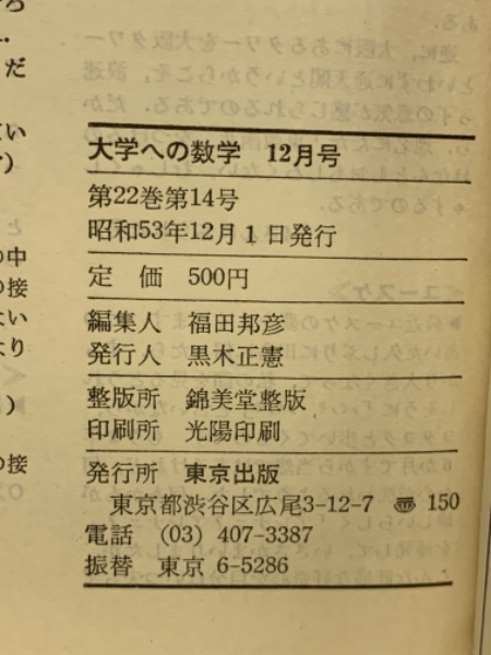 大学への数学 1978年 12月号