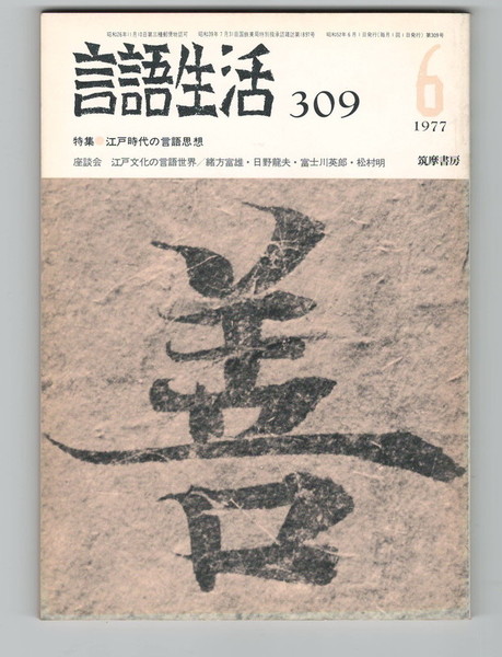 言語生活 309号 特集 江戸時代の言語思想