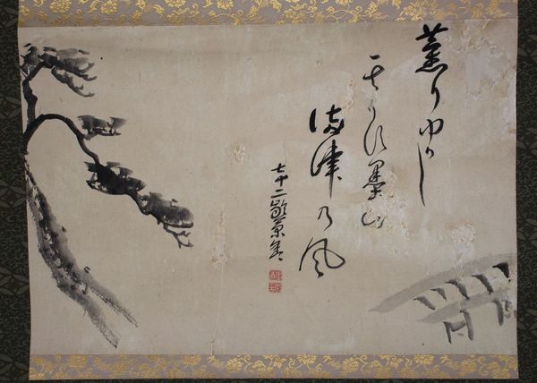 • 解説 文政七年 保存並 紙面少傷み 「薫りゆかし 其うす墨に 満津乃風」長門長府の俳人田上菊舎句幅の句幅。菊舎七十二歳、文政七年の時のもの。菊舎は七十歳を過ぎる頃から落款に年齢を加えることが多くなる。菊舎は文政九年八月、七十四歳で亡くなっているが、何故か七十四と書かれた落款は一例も無く、ずべて七十五と書かれている。四の字を避けたものであろうか。
