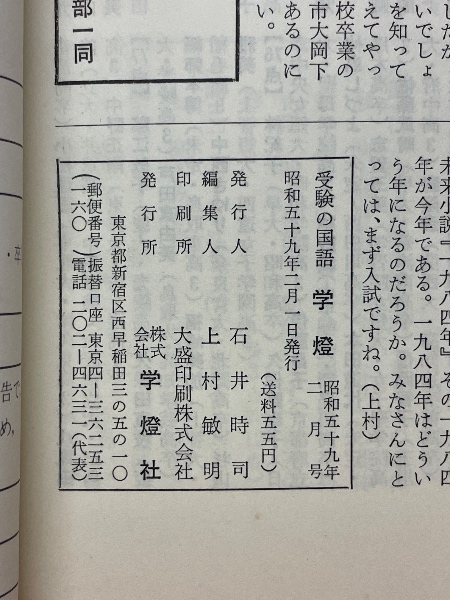受験の国語 学燈 1984年2月号