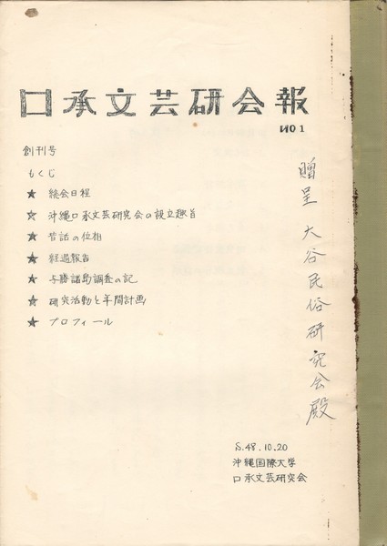 口承文芸研究会報1 創刊号