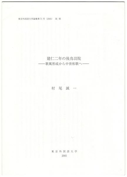 建仁2年の後鳥羽院 歌風形成から中世和歌へ