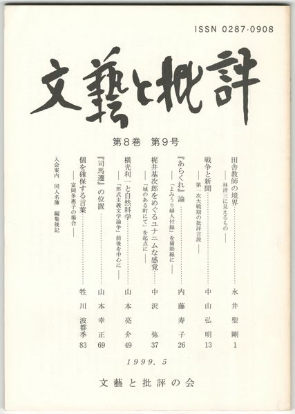 文芸と批評  8巻 9号 田舎教師の境界