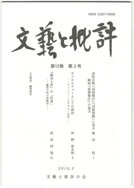 文芸と批評 12巻 3号 清原宣賢『詞源略注』『詞源要略』に見る顕昭『後選集注』の逸文