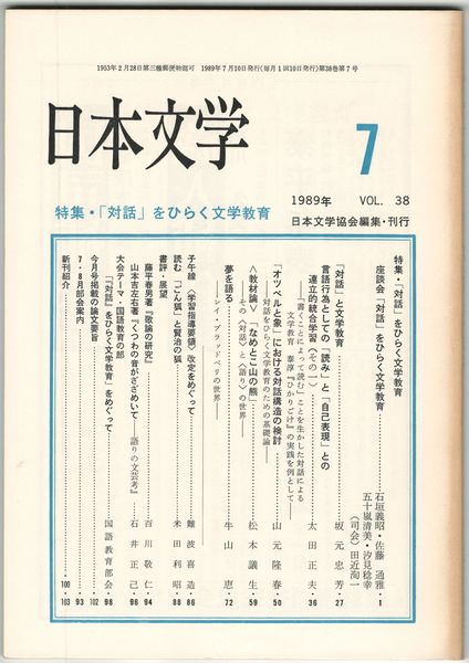 日本文学38巻07号 「対話」をひらく文学教育