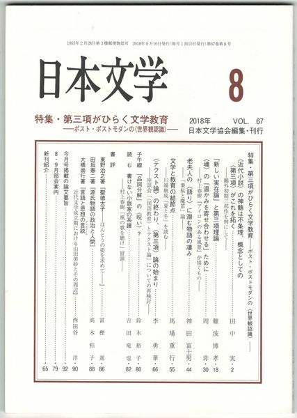 日本文学67巻08号 第三項がひらく文学教育