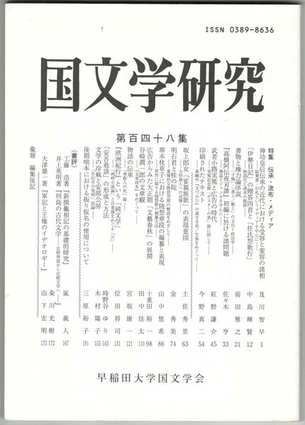 国文学研究 148集 伝承・流布・メディア