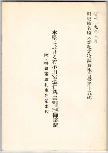 • 解説 復刻 ヤケ・少シミ 本県に於ける有栖川宮熾仁親王御事績(福岡藩知事) 附・福岡藩偽贋札事件始末抄  県史蹟名勝天然紀念物調査報告書第15集