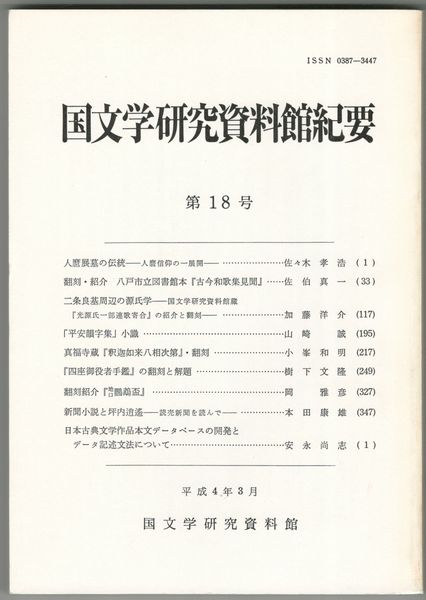 国文学研究資料館紀要 18号