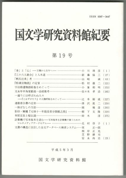 国文学研究資料館紀要 19号