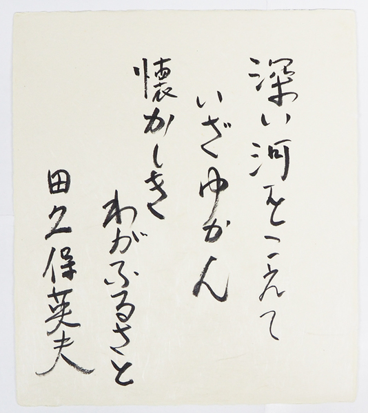 田久保英夫色紙 『深い河をこえていざゆかん懐かしきわがふるさと』 筆ペン書 和紙色紙