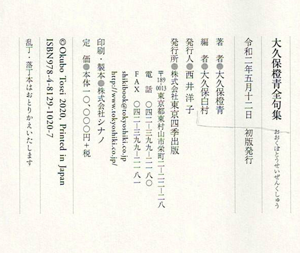 大久保橙青全句集 初版