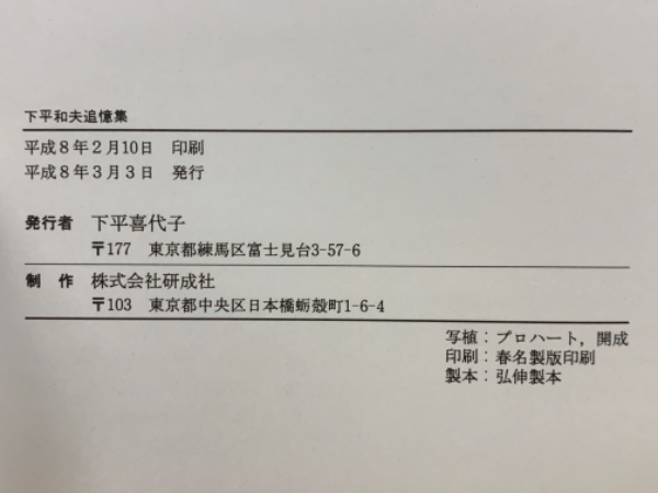 下平和夫追憶集