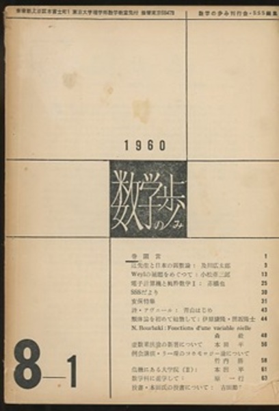 数学の歩み Vol. 8/1 Weylの補題をめぐって(小松彦三郎)ほか <数学の歩み>
