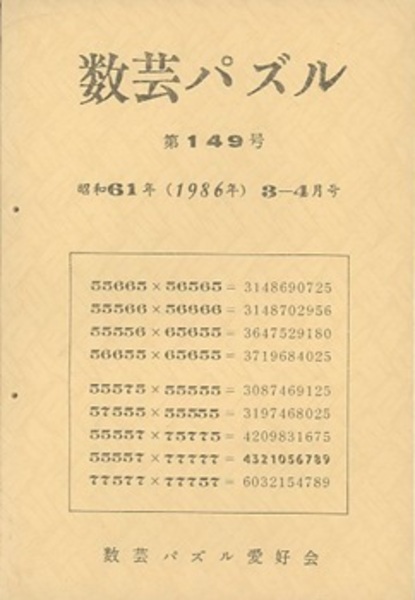 数芸パズル 第149号 昭和61年 3ー 4月号 <数芸パズル149>