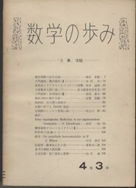 数学の歩み Vol. 4/3 概周期解の存在定理(渋谷泰隆) 討論室:数学民主化の道(倉田令二朗)ほか <数学の歩み>