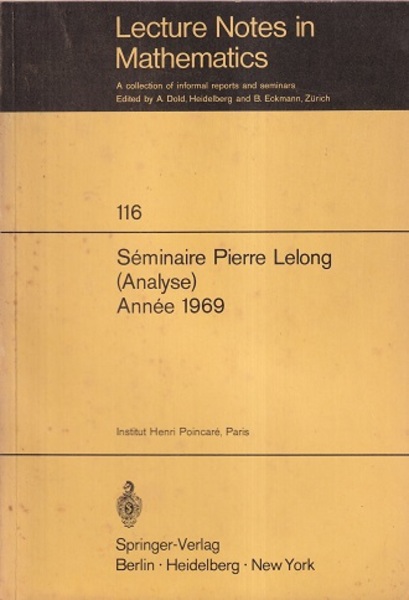 Seminaire Pierre Lelong (Analyse) Annee 1969 Institut Henri Poincare, Paris <Lecture Notes in Mathematics 116>