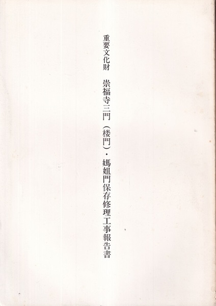 重要文化財 崇福寺三門(楼門)・媽姐門保存修理工事報告書 長崎県 <国宝・重要文化財建造物保存修理工事報告書>
