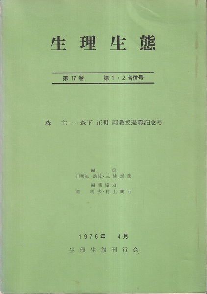 生理生態 第17巻 第1・2合併号 森圭一・森下正明 両教授退職記念号