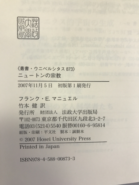 ニュートンの宗教 (叢書・ウニベルシタス) 法政大学出版局 フランクEマニュエル 竹本健(訳)
