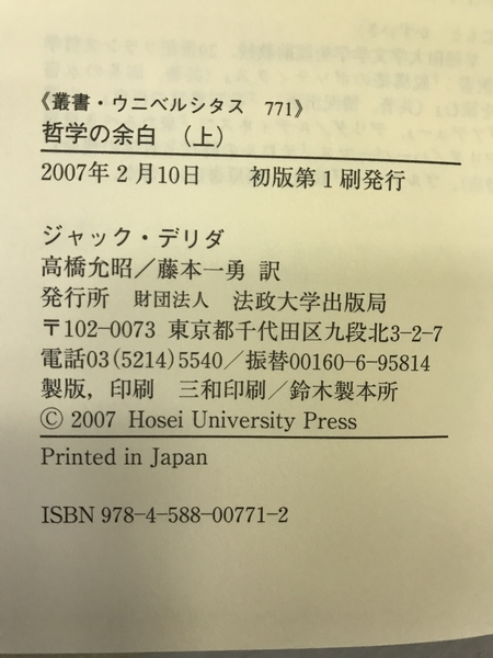 哲学の余白 上 (叢書・ウニベルシタス) 法政大学出版局 ジャック・デリダ