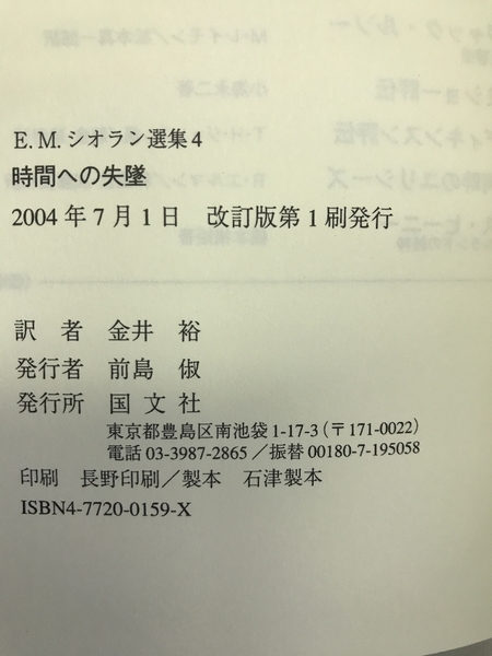時間への失墜 (E.M.シオラン選集) 国文社 金井裕(訳者)