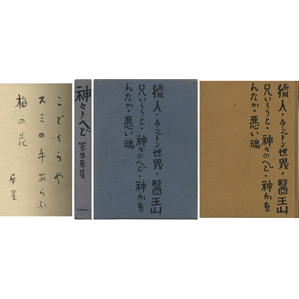 • 解説 特製50部 毛筆識語「こどもらやスミの手あらふ梅の花」署名入 奥付頁前に「五十部の内その五十」と墨記載有 函少スレ背少ヤケ 函裏角に「特製五十部著者署名入價三圓五十銭」紙片貼付(朱筆で五十)