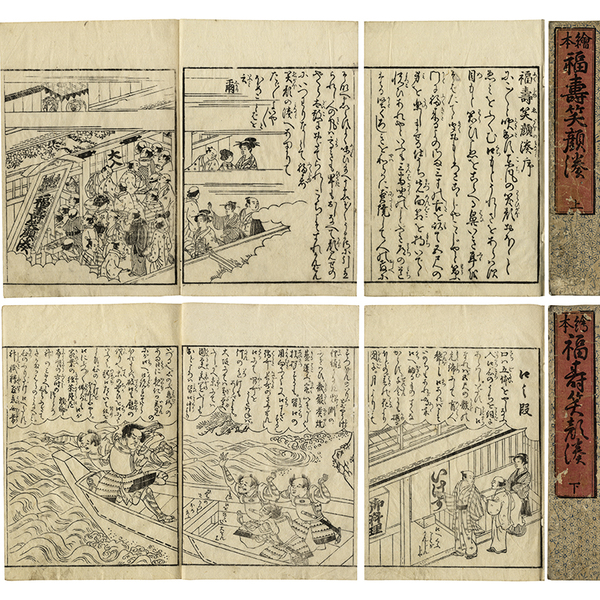 • 解説 上巻11枚・下巻12枚 原表紙 原題簽「繪本 福壽笑顔湊 上(下)」 22.5×15.9糎 拵帙入