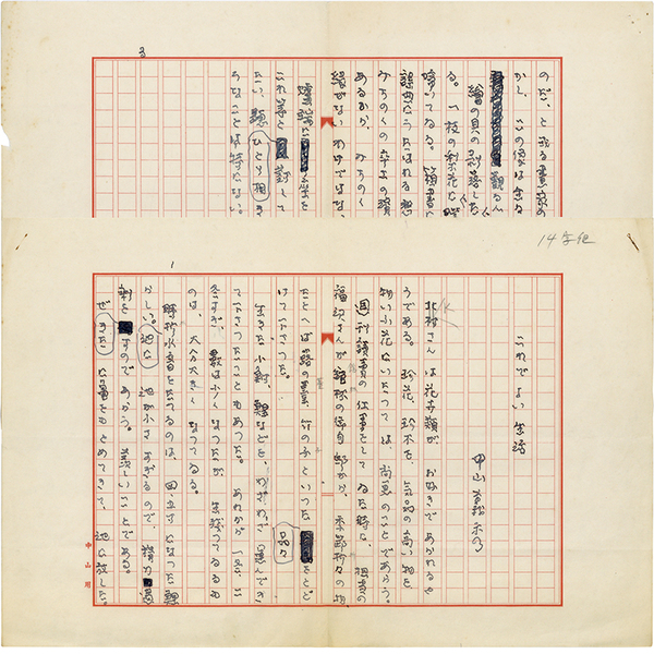 • 解説 『これでよい生活』 ペン400字詰完 専用箋使用 「K(北村)さんは花弁類が、お好きであられるやうである。珍花、珍木を、気品の高い物を、物いふ花にいたっては、尚更のことであらう。週刊讀賣の仕事をしてゐた時に、~」